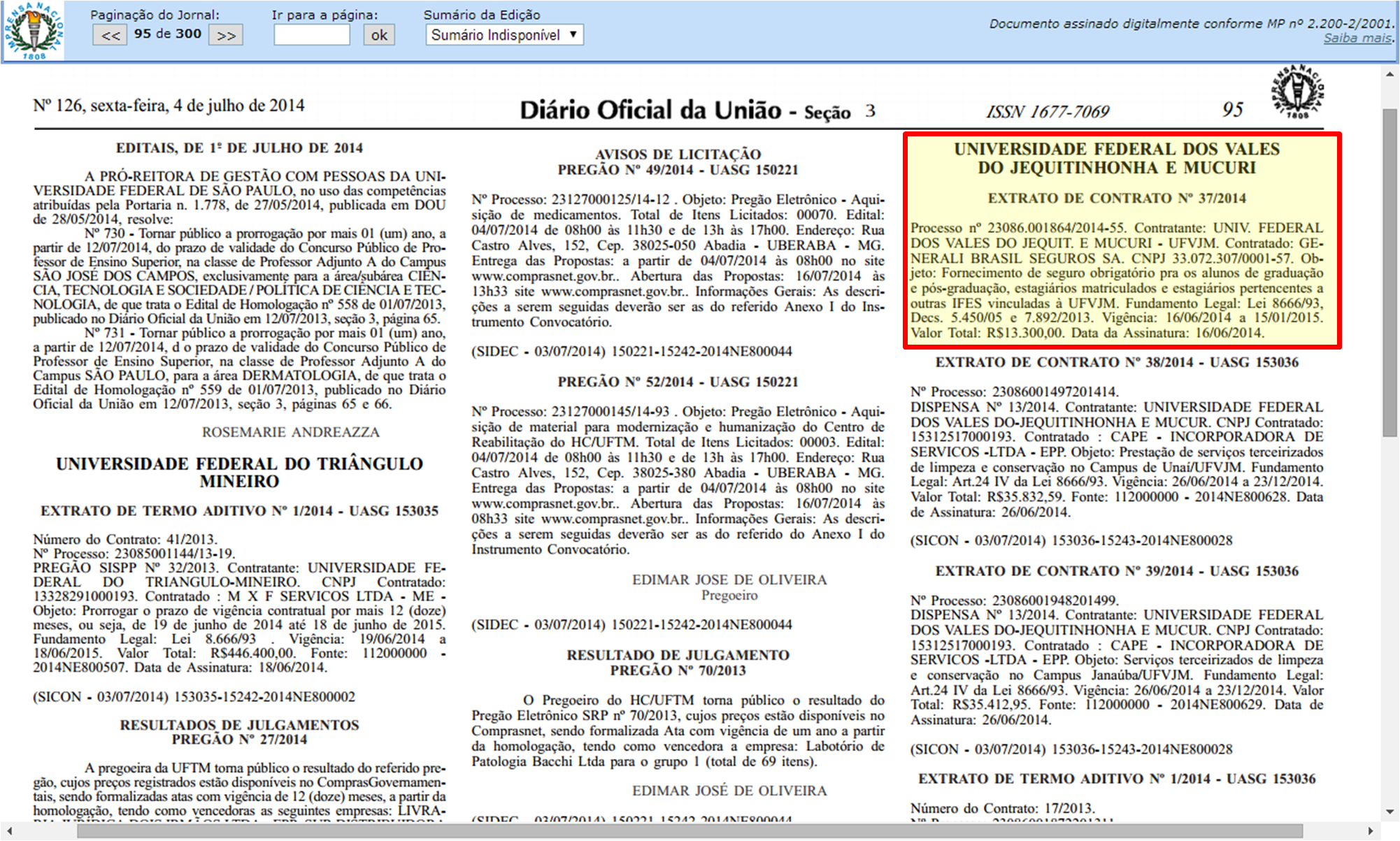Termo de Compromisso de Estágio Obrigatório s/ informação do seguro